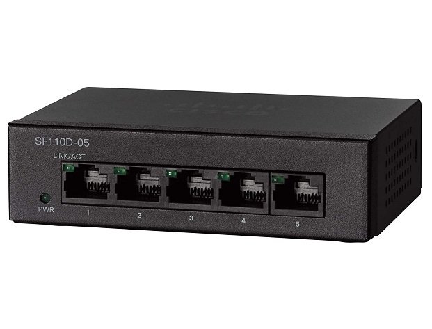Cisco 110 Series 5-Ports 10/100BASE-TX Fast Ethernet Layer 3 Rack-mountable Network Switch – SF110D-05