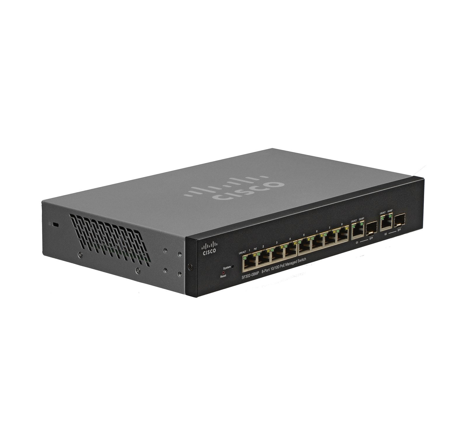Cisco 8-Ports 10/100/1000BASE-T PoE+ Layer 3 Rack-mountable Managed Network Switch with 2-Ports SFP – SF302-08PP