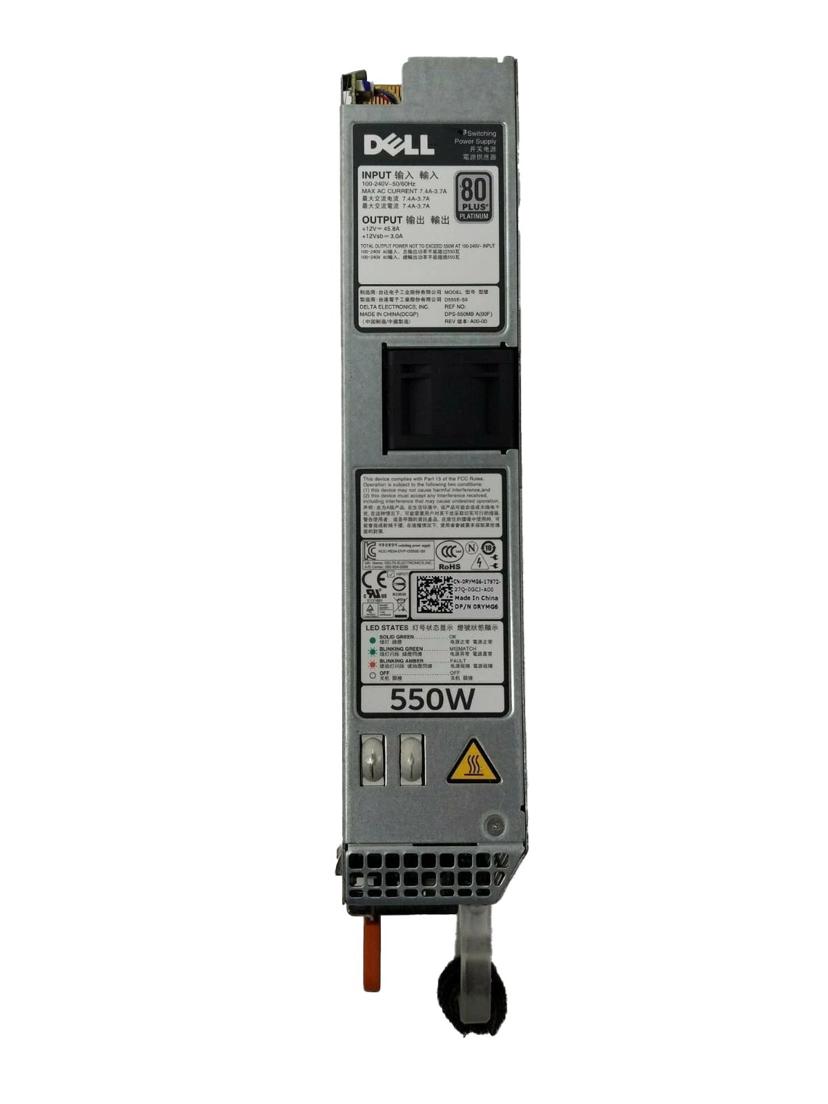 Dell 550-Watts 80-Plus Platinum Power Supply for PowerEdge R420 / R420XR – D550E-S0
