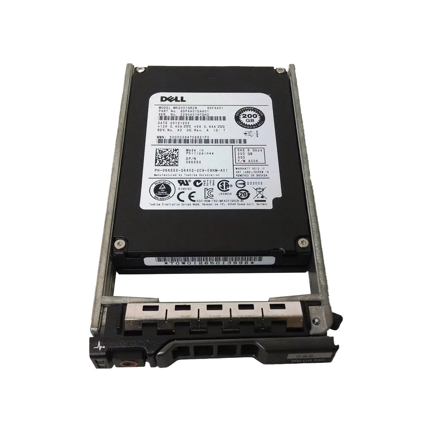 Dell 200GB SAS 6Gb/s Hot Swap SLC 2.5-inch Solid State Drive (SSD) with Tray for PowerEdge G13 – 6K55X