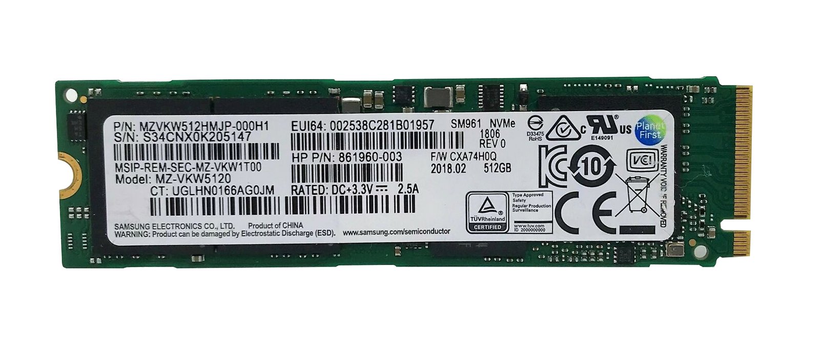 HPE 512GB MLC PCI-Express Gen 3.0 x4 NVMe M.2 2 – 861960-003