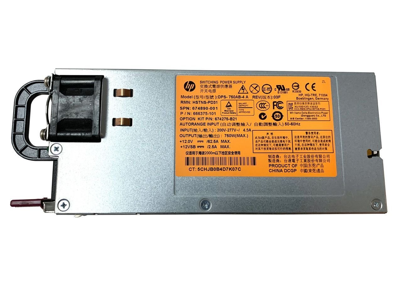 HPE 750-Watts Common Slot Hot-Swap 277-Volt AC Power Supply for ProLiant DL360P G8 DL380P G8 ML350 G6 ML110 G7 – 674275-B21
