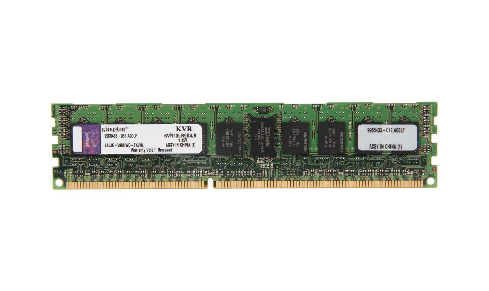 Kingston 8GB 1333MHz DDR3 PC3-10600 ECC Registered CL9 240-Pin DIMM 1.35V (LV) Single Rank x4 Memory Module – KVR13LR9S4/8