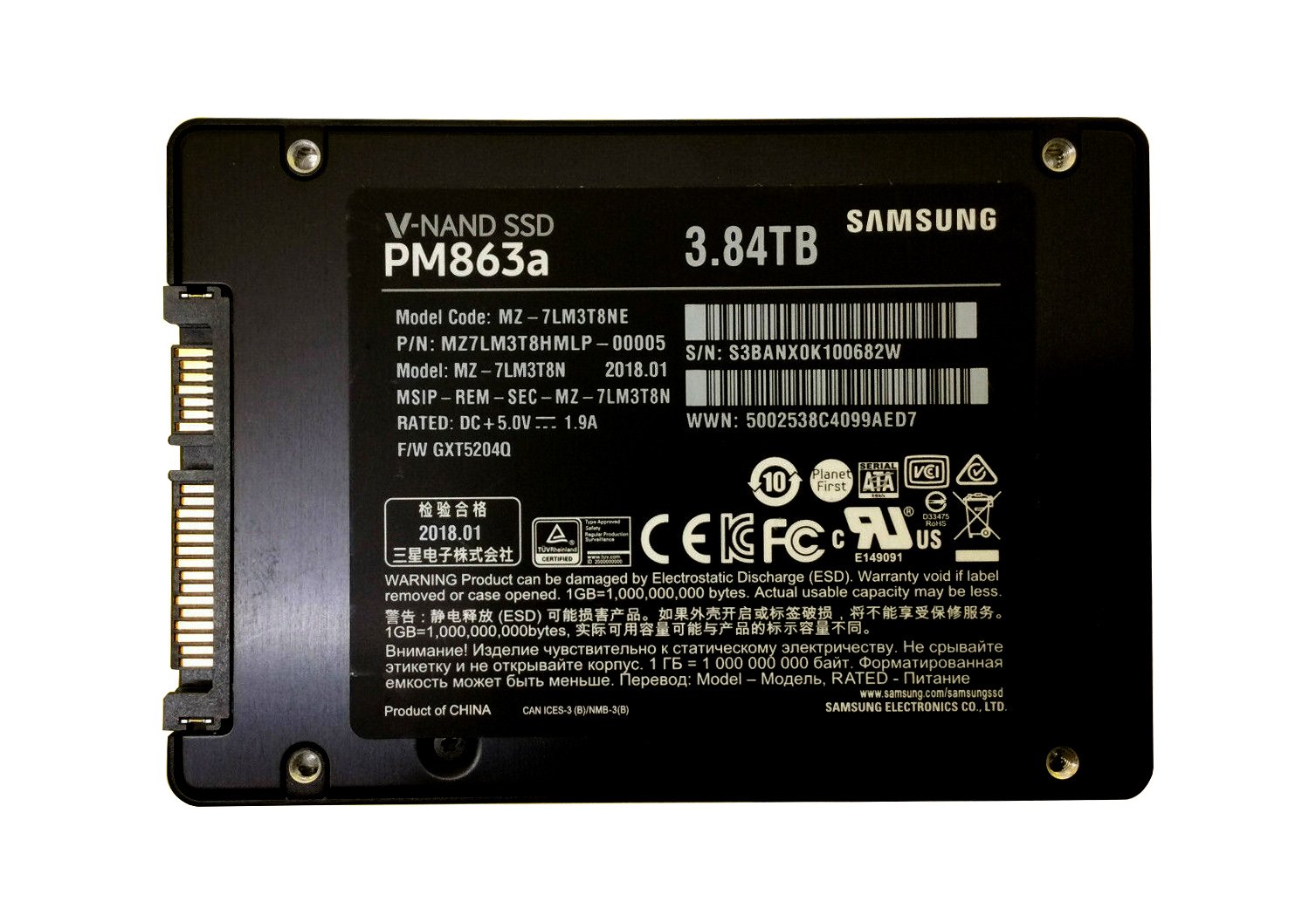 Samsung PM863a 3.84TB SATA 6Gb/s 3D NAND TLC (A – MZ-7LM3T8N